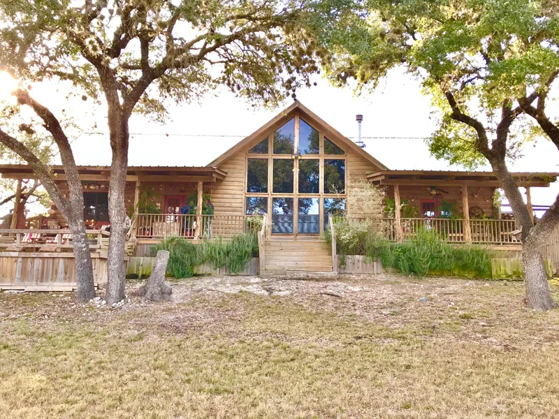 Highlight of the ranch is the rustic two story log home, 3 B/2Br, large loft, open floor plan, central air & central heat. Entrance to the home is a long front porch with wooden floor which covers the length of the home. Colorful patio furniture located on south end of the porch is the central gathering place to visit and enjoy scenic views of the hill country, watch for deer, turkey and exotic game animals. The log home is well designed and has many unique features including a large open area with kitchen, dining and living area with vaulted ceiling. The kitchen cabinets are aspen wood with deer horn pulls. Antique propane cook stove in excellent condition is included with the sale of the ranch. The fire place is native stone with pecan mantel board. Wide picture windows in the living area provide views eastern portion of the ranch.