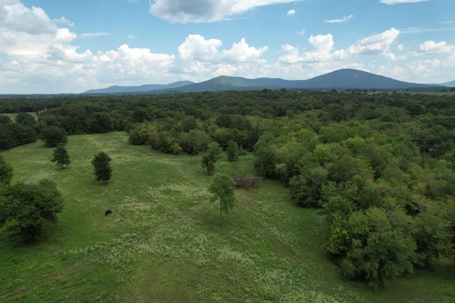 SITE: 70 acres m/l of nearly level terrain with Gap Creek running through the property, offering a unique opportunity to build a very special homeplace. Great view of the Cavanal and Sugar Loaf Mountain Ranges. Much of the property is in the flood zone due to the creek drainage, but balance provides some great sites to build a home while utilizing the creek system in the scheme of uniqueness.