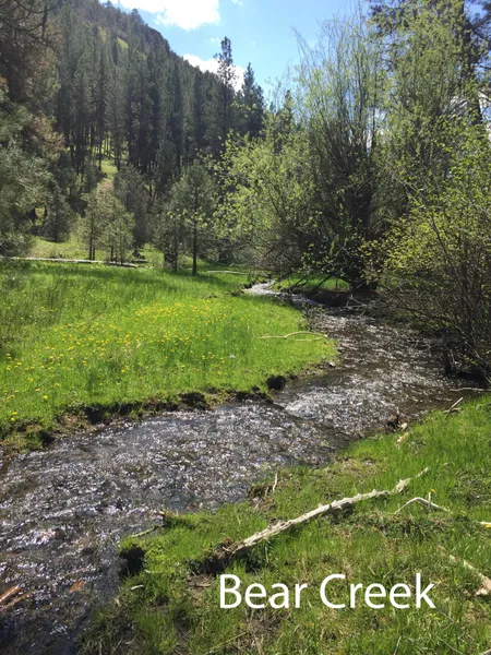 This buildable and beautifully timbered 527-acre (approx.) hunting property qualifies for a Forest Dwelling permit, and has 1.3 miles of pretty, year-round Bear Creek running through it. It is easily accessed by a short 0.8 mile flat and wide public-use Forest Service road that connects to paved County Road 18 which the County keeps plowed all winter. Just driving the four miles up Road 18 from State Highway 26 is pleasant, with large trees and pretty Bear Creek. Conveniently located only eight minutes from the quaint little town of Prairie City in Grant County, the property is also only thirteen minutes from the big town of John Day with its additional restaurants and shopping. It is bordered by Forest Service land on most of its west and north sides.
