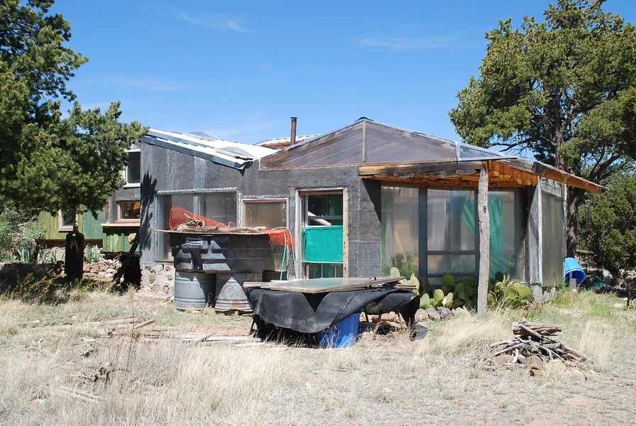 An artist's creation are these living spaces, a Hogan which is no longer in use but perfect as a future guest house, and a creative building which is used by the owner as her home with 2 lofts that sleep 5, a main level master bedroom which sleeps 2, this is a must-see for the adventurous and creative mind. 2 solar wells, barn, corrals, plus an unfinished adobe studio. Quiet and secluded. 8 foot fences protect the yards from predators and elk.