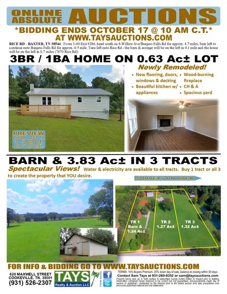 Terms: 10% Buyers Premium. 20% down day of sale, balance within 30 days at