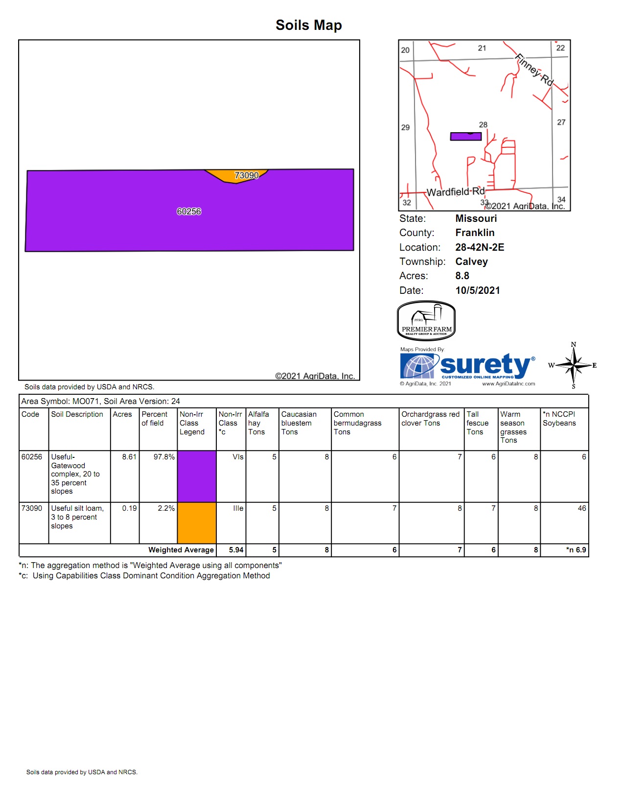 Search for detailed parcel information including; Elevation & Vegetation Maps, Ownership Information, Detailed Parcel Information, Crop History Map, Soil Survey Productivity Data, and more.