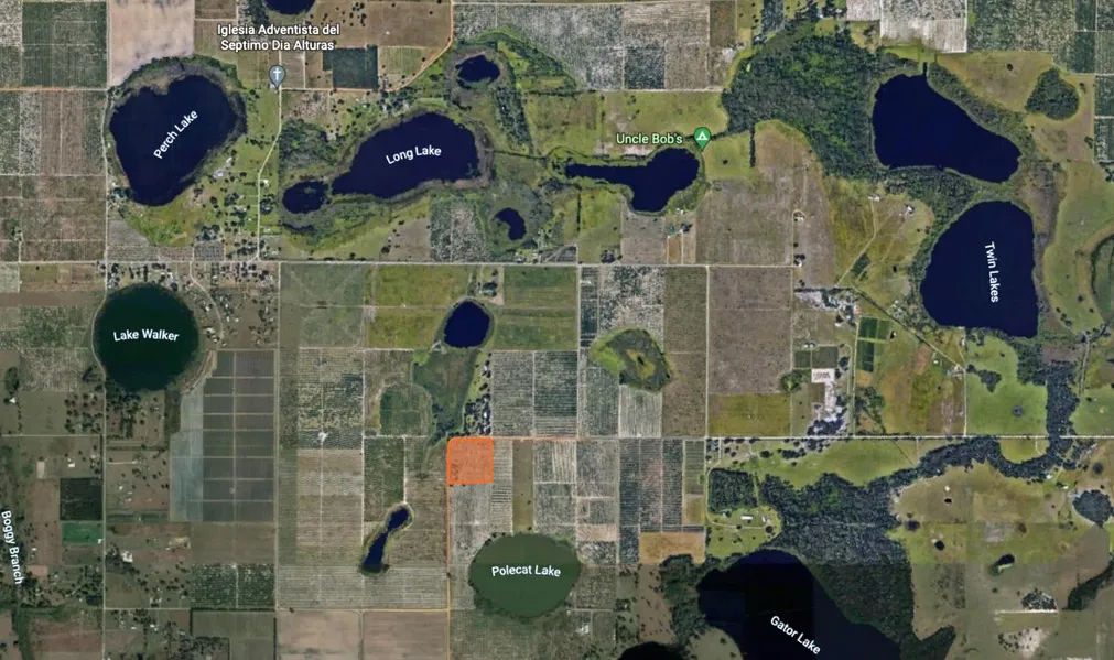 Rocker Road Estates Lot 1 is 9.09 acres and is one of four home lots. This property is a former citrus grove ready to be cleared for pasture or a home site. Located in Central Florida, the property is an hour and ten minutes to Disney, an hour to Tampa, and 30 minutes to LEGOLAND. The Bartow Regional Medical Center is 20 minutes away, Advent Health in Lake Wales is 20 minutes, and the Winter Haven Hospital is 30 minutes away. The property has 1,060 feet of road frontage on Rocker Road, which runs along the property's north and west sides. The property slopes to the west and south and has no wetlands. This 9.09 Acre lot would make the perfect homesite to build a custom home in Central Florida.