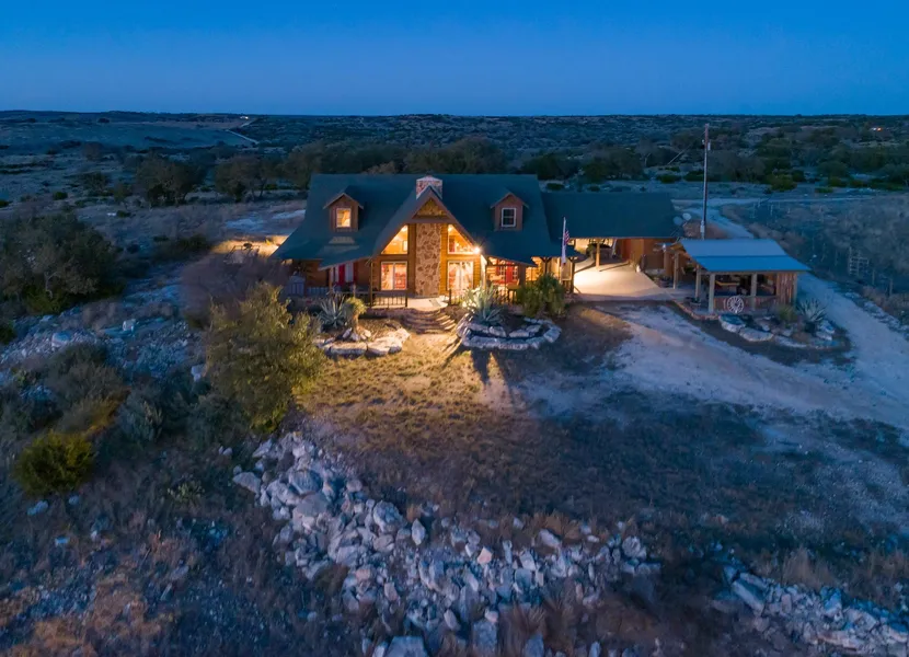 Located approximately 20 miles south of Rocksprings via 674 and Ranch Road 14 in the CX Ranch Subdivision, the M&M Ranch is a stunning property. The centerpiece is a 3-bedroom, 3.5-bath custom home atop the tallest hill, featuring soaring ceilings with 15-mile views in every direction. Custom cabinetry and railings made from Ponderosa pine, hewn and cut on-site, with .75-inch pine used throughout, add to the home's rustic charm. The oversized outdoor kitchen and screened-in porches offer year-round entertainment. The property is offered turnkey, including all furnishings and ranch equipment.
