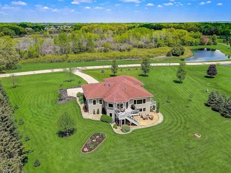 Energy Star Certified poured concrete construction Ranch home w/fully finished walk-out Lower Level on over 2 Acres! In-floor heating thru-out house (upper & lower floors). 9-10 foot ceilings, Spacious gourmet Kitchen/Dining Rm has 2 skylights, 2 sinks, large center island, Dining Room w/coved ceiling. Living Room w/walkout door to upper deck. Master Bedroom Suite has large WIC & luxurious Master Bath. Bedroom 2 on main with skylight. Solid Ash doors & Kohler fixtures. Lower Level has updated Rec Room (2020) w/wet bar & frig, gas fireplace, large built-in cabinet, walkout to Paver Patio. Large Bedroom 3 with Sauna, & Large Bedroom 4 or Office/Den/Craft Room. 33x32 garage with lots of storage. Newly added landscaping, front and back. 2018 new Hardy Plank siding installed whole house.