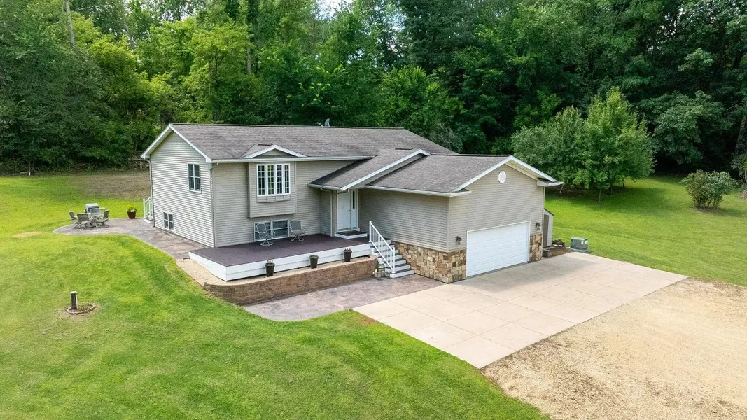Welcome to this beautiful 4 Bed 2 Bath home on approx. 12 acres in rural Buffalo Co.! The home features a large master bedroom w/walk-in closet, attached 2 car garage, wood floors, very large yard, gas fireplace and more! The decks and stamped concrete were new in 2020. New water heater in 2021 and furnace in 2022. Radon mitigation system is installed. The wooded acreage offers additional hunting and recreational opportunities. The apple trees in the yard are a big draw for local wildlife. The home is tucked up off the road in a quiet setting. Drive times include: 5 mins to Mondovi, 35 mins to Eau Claire and 35 mins to Arcadia. Schedule your showing today!