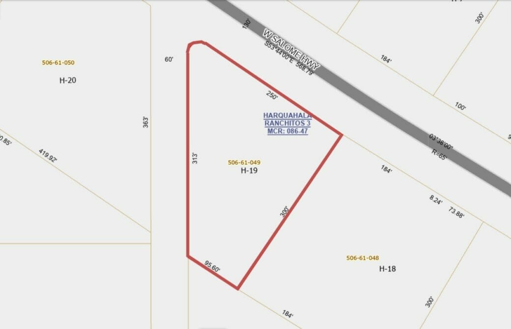 Legal Description: LOT:H19 SEC/TWN/RNG/MER:SEC 23 TWN 3N RNG 10W HARQUAHALA RANCHITOS 3 MAP REF:MB 8647