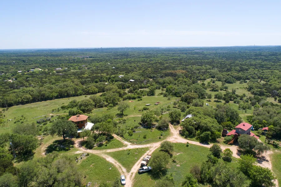 HEAVEN'S GATE RANCH: 75 acres in the Texas Hill Country limited only by your imagination. It offers panoramic views, varying elevation and terrain. Mature Oaks and other native trees, plants and fruit trees. There are four (4) existing residential structures which total 4,992 square feet. The main living structure is a hexagon shape 3 story (approx. 1,972 sq. ft)which offers amazing views and custom wood craftsmanship. The additional 3 residential structures are income producing. Further development potential for B&B, VRBO, Retreat/Event Center or residential development. Well in place. Two Septics, partial frock fence. Adjoins larger tract. Secluded location yet just minutes from downtown San Marcos, Texas State University and easy access to IH 35 Austin/San Antonio Corridor. Currently in Wildlife Pasture. No restrictions. No zoning in place. Buyer will be responsible for confirming square footage.