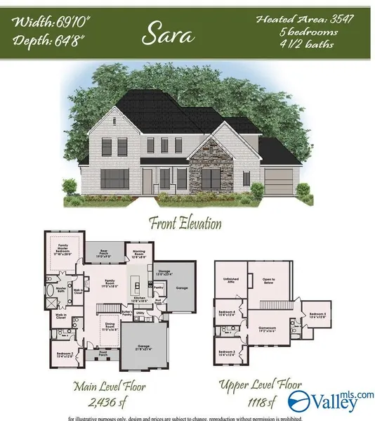 Proposed Construction-PHASE 3 NOW OPEN! Sara Plan with 5 bedrooms and a game room. 2 story great room and filled with included features! 10' ceilings and 8' doors on main level. Formal Dining Room with elegant trim details throughout home. Quartz counters, double oven, gas cooktop, vented cabinet hood, large walk in pantry. Main level Primary Suite has trey ceiling and hardwood flooring, freestanding soaking tub and large shower. 2 huge master walk in closets. Downstairs bedroom with private bath. Covered front and back porch with 3 car garage, Duel Fuel Gas HVAC, Tankless Water Heater, Plus Huge unfinished attic space! PearsonHomesInc. Madison City Schools !