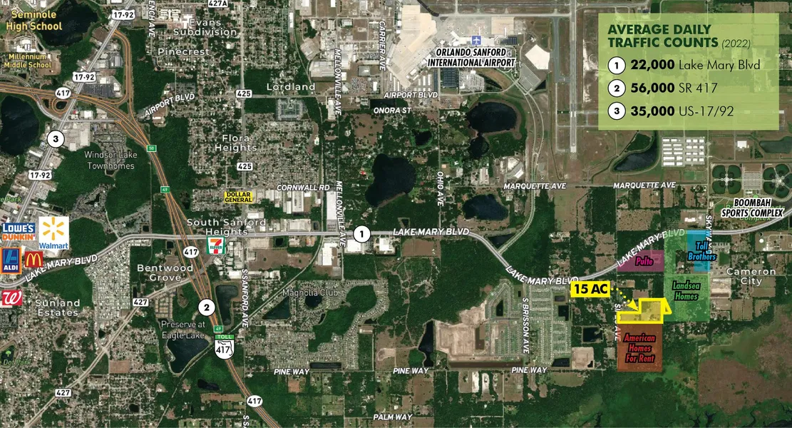 Everything you need is right here! Excellent opportunity for residential development within the highly desirable suburban Seminole County market near Lake Mary/Sanford. Surrounded by public and natural amenities and close (2 miles) to major transportation linkage SR 417, providing quick and easy access to Orlando/Orange County markets to the south, Mt. Dora/Lake County to the west and Daytona/New Smyrna to the northeast. Located along Sipes Avenue just south of Lake Mary Blvd; just south of Orlando Sanford International Airport and southeast of historic Downtown Sanford. The neighborhood includes the Boombah Sports Complex. Property is irregularly-shaped, mostly cleared and level.
