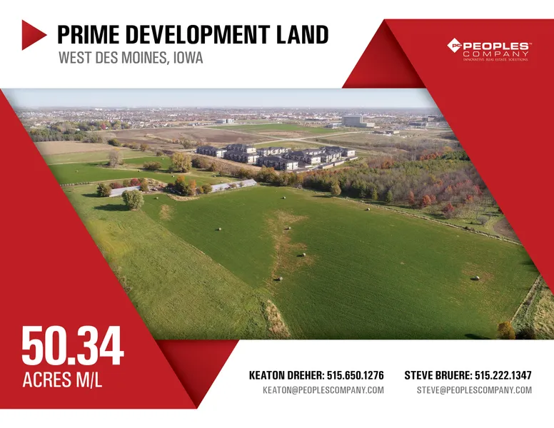 Offering 50.34 acres m/l of prime multi-family development land in West Des Moines, Iowa. Located in the rapidly expanding area of West Des Moines, southwest of Jordan Creek Mall along S 88th St, the site is shovel-ready with all utility infrastructure available. Currently, the property is not zoned, but is slated for high density residential uses according to the City of West Des Moines and could accommodate 16 to 18 units per acre. Site can be serviced by an existing 8 inch sanitary sewer that is stubbed into the northwest corner of the property at Cascade Ave. There is also an existing 16 inch water main along S. 88th St. Exhibits and development concepts can be found in the Attachments Section which demonstrate how road infrastructure through and around the property will develop. Excellent location just minutes from Jordan Creek Mall and easy access to Interstates 80 via the new Grand Prairie Pkwy interchange as well as Interstate 35, a few miles down Mills Civic Pkwy.