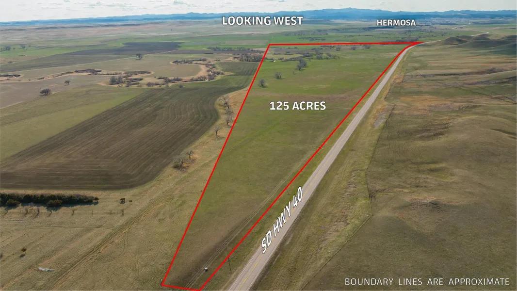 125+- acres! BEAUTIFUL LAND W/ A BEAUTIFUL VIEW! What a place to hang your heart! Nice Level acreage with a grand view of the Beautiful Black Hills and a nicely treed creek bed running through. Perfect for a hobby ranch or horse ranchette! :) Located on a plowed blacktop hwy for easy access year round. Just a stones throw from Hermosa and from there a quick drive to Rapid City or to the main Black Hills attractions and many parks. There is association water hooked up, too!! Drive off the road straight onto your private meadow and bask in the lovely view of the Black Hills. The owner of this land owns acreage adjacent and would be willing to sell more or less if a buyer wanted. Final acreage and legal description will be determined by survey and platting. Closing date will have to be arranged around that timeline. Come take a look and bring your dreams!