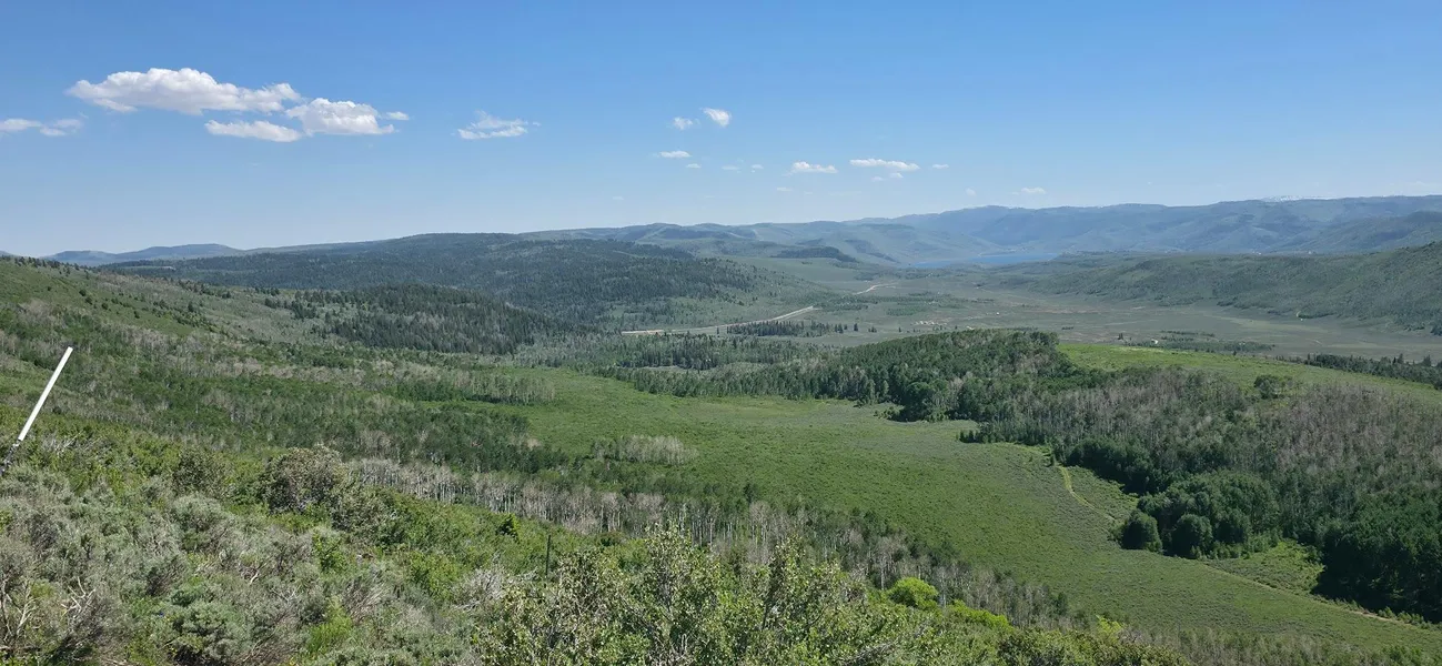 Top of Soldier Summit Estates views of distant Scofield Lake and valley leading to lake. Views of mountains to the south and
