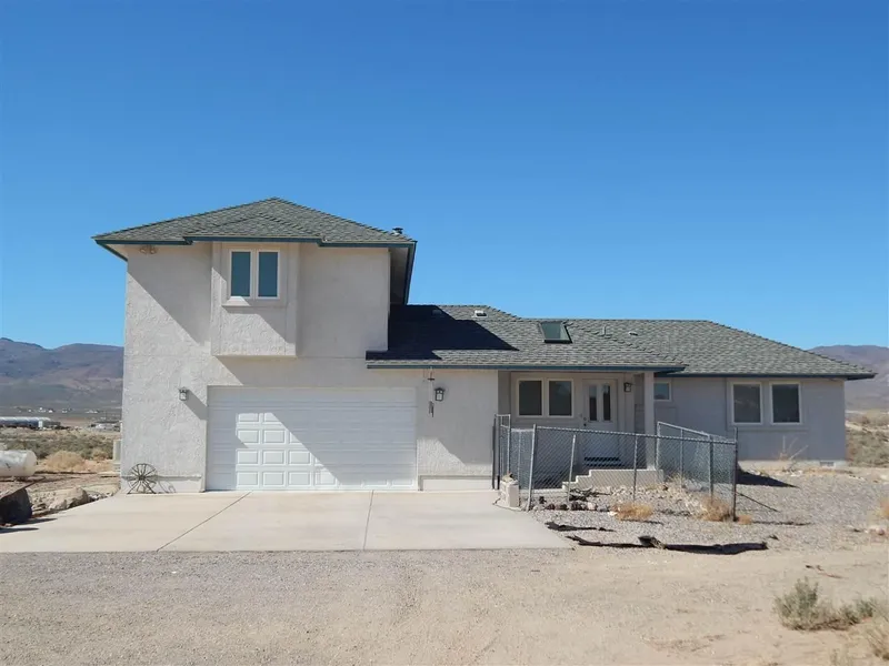 This is a one-of-a-kind piece of property! Located in a private remote area of Stagecoach, Nevada it has many spectacular features. This is a 4-bedroom, 3-bath, 2-story stucco home that is partially desert-landscaped. This would also make a great development opportunity with 49 acres that could be divided into 5 acre parcels and include 50 acre feet of water rights. The living rooms include a separate and a formal. In one there is a gorgeous rock fireplace with woodstove.