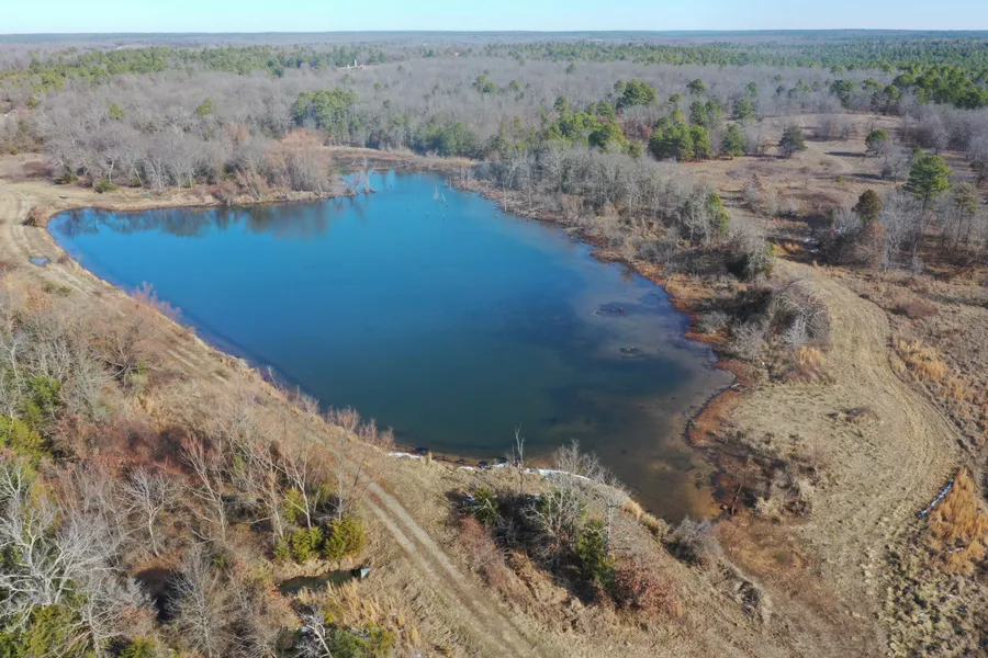 One of the many highlights of the property is a beautiful, clear water lake, which is just under 5 acres at full capacity. Great for fishing and waterfowl, the lake also offers a constant water source for the abundant wildlife. Adding to the quality wildlife habitat is the 80% timber 20% native grass mixture. The timber is a combination of mature Pines and mast producing hardwoods. Cabin Creek originates on the property and flows southward across it to its confluence with Muddy Boggy Creek.