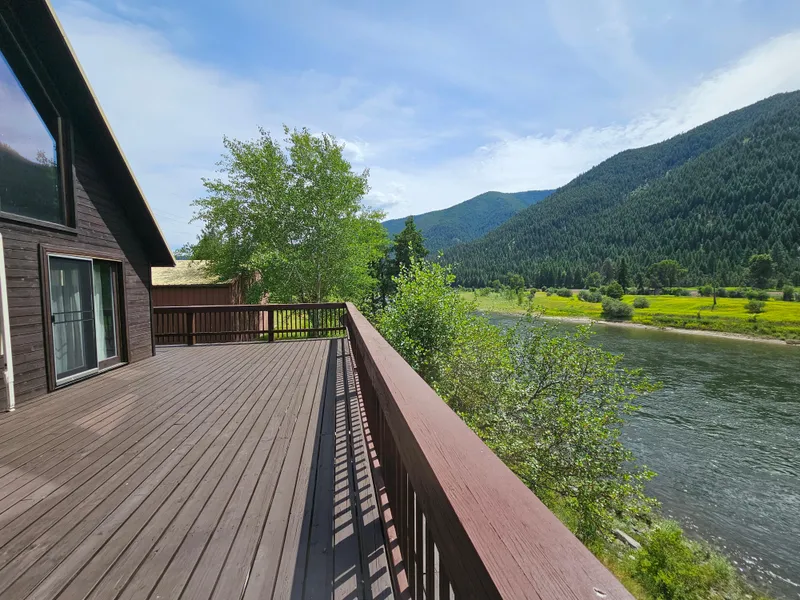 This 1800 Sq Ft, 1.47 acre oasis features a view & privacy which will make people think you're living in a hideaway, but you're really still just 15 minutes from Superior & 1 hr to Missoula for amenities. This 2 bed, 2 1/2 bath has a kitchen, living room & 1 bathroom on the main floor, which then leaves the sleeping areas removed for additional seclusion. An iron spiral staircase leads to the upper level featuring a large multipurpose room & full bath, perfect for a guest suite or gazing. The main bedroom is tucked away in the lower level with a full bath, plus utility room for ease of use. With over 500 feet of riverfront land & an oversize deck, you can enjoy the property day & night without ever feeling the need to leave. The double car garage means there is room for your everyday vehicle, plus some seasonal toys. The level, manicured yard means upkeep is minimal & the area is extremely easy to enjoy. Access the river by foot directly from your own parcel.