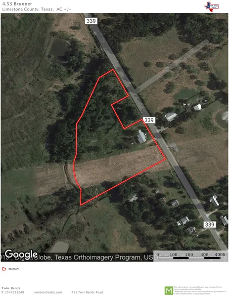 4.53 Acres on paved road FM 339 just south of Hwy 164 in Limestone, County. There is a mobile home that is not livable. Water meter, electricity, and septic are in place. Conditions must be verified by an independent inspector.