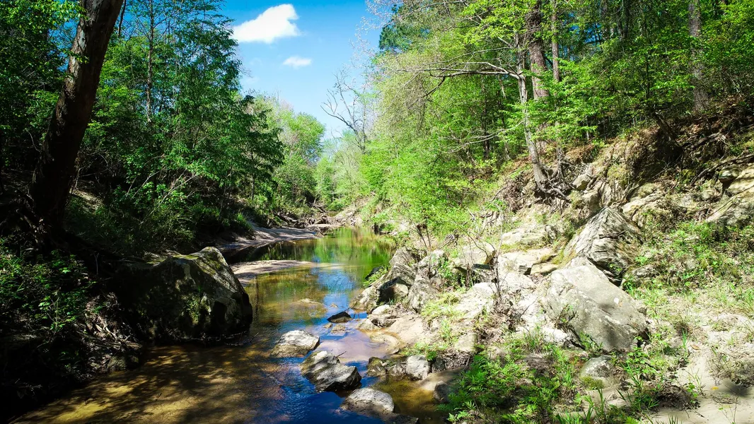 As you explore the property, you'll be greeted by the majesty of mature hardwoods and pines that have stood the test of time, creating a natural canopy that adds to the property's allure. The interplay of sunlight filtering through the leaves creates a magical ambiance, providing shade and serenity to those who wander through this sylvan paradise.