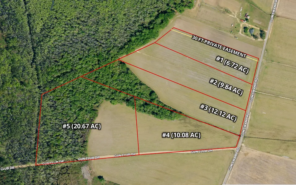 Lot #4 $74,900 (10.08 acres and 132 feet along Gum Swamp and 1,422 feet along Gun Club Road)