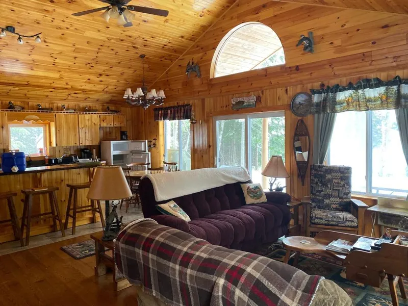 This camp takes privacy to a whole new level. Situated on 24 acres with 900+/- feet of frontage on Manhanock Pond. This carefully crafted log sided cabin is cozy and inviting. Finished in pine from floors to ceiling, Monson slate counter tops and kitchen sink, expansive windows with views of the water. Open floor plan with two bedrooms downstairs and loft area for additional guests. Come take a look before this one is gone.