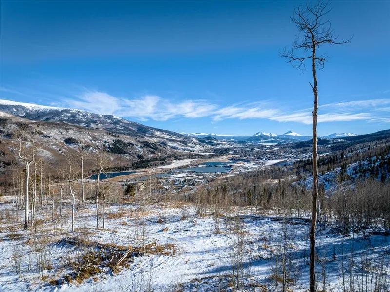 Introducing The Overlook at Summit Sky Ranch! Here, 17 luxury homes will be built on over 340 acres, seamlessly blending contemporary design with the natural beauty of their mountain surroundings. The Spruce home has a contemporary design with clean lines and a second-level open-concept living space, offering stunning views and abundant natural light. The welcoming living area features a floor-to-ceiling stone fireplace, with 12-foot vaulted ceilings that create a spacious, airy ambiance throughout. The design of the home emphasizes indoor-outdoor living space, with oversized windows, a huge covered deck right off the living space with an outdoor fireplace, and a lower-level patio that offers breathtaking mountain views all day long. This southwest-oriented homesite backs up to National Forest, sits adjacent to a large swath of private Overlook open space, and has stunning views of Mount Guyot in Breckenridge, Buffalo Mountain, Red Peak.