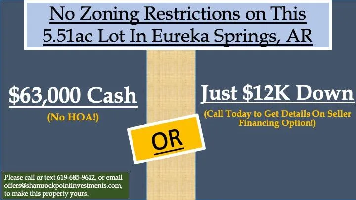 Are you looking for a serene and spacious piece of land to call your own? Look no further! This 5.51-acre lot located on Thunder Road in picturesque Eureka Springs, Arkansas, is the perfect opportunity for your dream property.