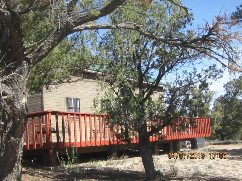 Parcel 765 Pump House Road. Well built Cabin on 36 Acres in a remote, private area of Mohave County. The topography of this property allows for ingenious water management; the top level abuts Arizona State Land on a large hill, and holds 2 tanks (5,000 Gal Water total) which is gravity fed to the home; the mid level has the home, where the pitched metal roof with gutters catches rainwater into 2 tanks (3,500 Gal Water total) which is gravity fed to the lower level where the water system takes care of the fruit trees and garden area. The owner, a contractor for decades, built this cabin to last for himself and his family. The cabin is a charming 1 bedroom, 1 bath with open kitchen/living room, 19 ft peak ceiling and stairs that climb to a comfy loft that easily fits two double beds. Pot shelves, an inviting inset fireplace with hearth, and elegant hanging lights add to the ambiance. This is not your buddy's rustic cabin; any Lady would be happy to spend time here. The kitchen is classy with an island, stonework counter-tops, and nice cabinets; and it boasts a 4 door propane powered refrigerator (with electric gauge). This beauty-in-the-woods cabin is powered by solar and propane. All lights are LED to last a long time and pull very little power. The deck wraps around two sides for enjoying those perfect Country Days and Starry Nights. The construction is sturdy with concrete block pillar foundation and much more. Windows are dual pane with wooden blinds inside. Too many particulars to list here. The HUGE garage/barn with large pull up door has dirt floor. It's large enough to store an RV plus more. The owner loves feeding and watering the elk, and in return they drop their antlers for him in the spring. The chicken coop is built to keep other critters out; and the fruit trees and garden bed area is fenced to keep out the elk and other visitors. The outer fence encloses most of the property and has two gates. There is A LOT of usable land here where you could keep horses or other animals, or just take walks and enjoy the beauty of creation. This property is a real find; a gem tucked into the woods. Please call for an appointment.