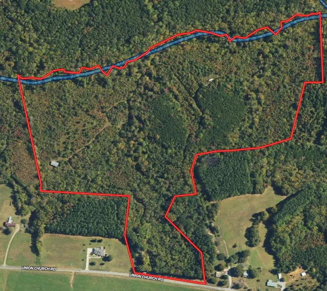 Welcome to Union Church Road! New to the market is the beautiful 48.01-acre wooded parcel, located in a quiet setting in South Boston and ready for it's new owner! With over 515' of road frontage and approximately 2600' of creek frontage marking the rear boundary, this parcel is set up perfectly for the outdoor enthusiast looking for a private tract of land to call their own. Ample elevated locations overlooking the creek bottom allow for multiple homesite locations for those looking to build. The growing timber is moving along nicely, with many large oaks and mature hardwoods left over from a timber harvest 16 years ago. Current owner had established many trails on the interior of the parcel- making traversing the almost 50 acres a breeze. Several deer were seen during a recent property visit and it's obvious with the ample deer sign that there are likely several bruiser bucks calling this tract of land home. Current owner recently installed a 30x50' open sided pole barn, ready to house your farm equipment, or possibly store your camper under while camping and hunting. Excellent location, only 11 minutes to the town of Halifax, 13 Minutes to South Boston. Degraded camper on site- could potentially be rehabbed. Contact for a private showing!