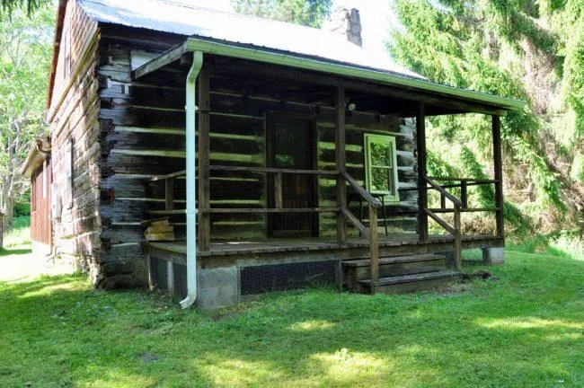 1800s hand-hewn cabin with upstairs bedroom hand cut stone chimney