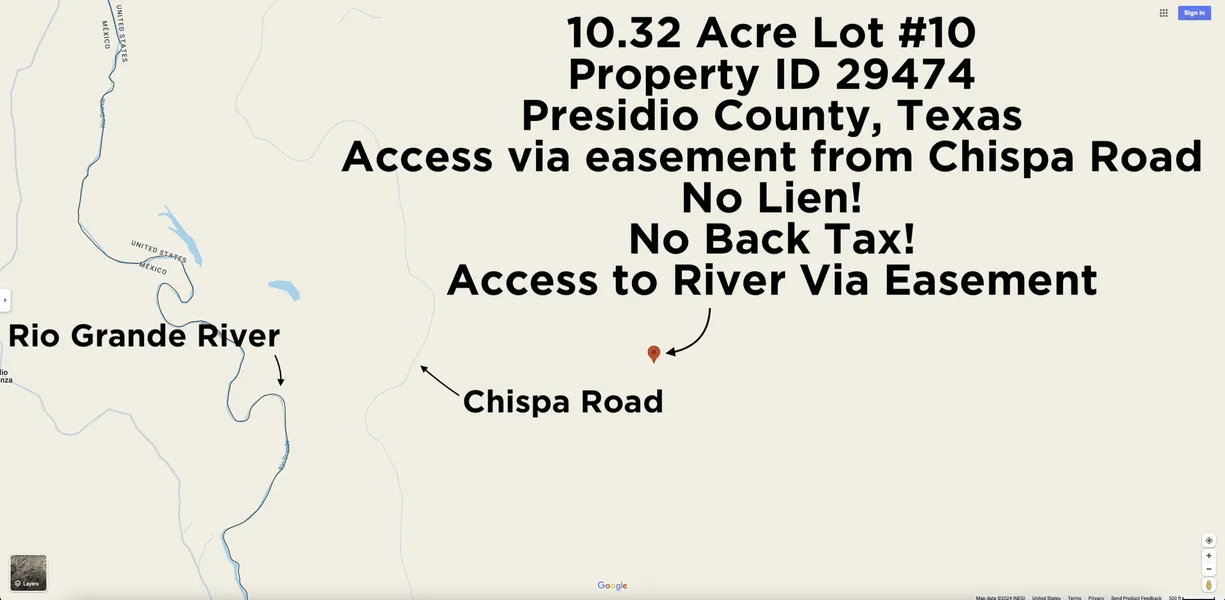Legal Description: LOT 10, A 10.32 ACRE TRACT OUT OF THE NORTH HALF OF SECTION 65, BLOCK 2, T&P RR COMPANY SURVEY, PRESIDIO COUNTY, TEXAS.
