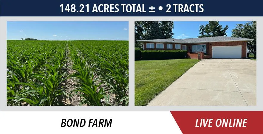 The Bond farm will be sold on a price per acre basis, based on taxable acres for Tract 1 only. Tract 2 will sell by the lump sum total dollar amount.