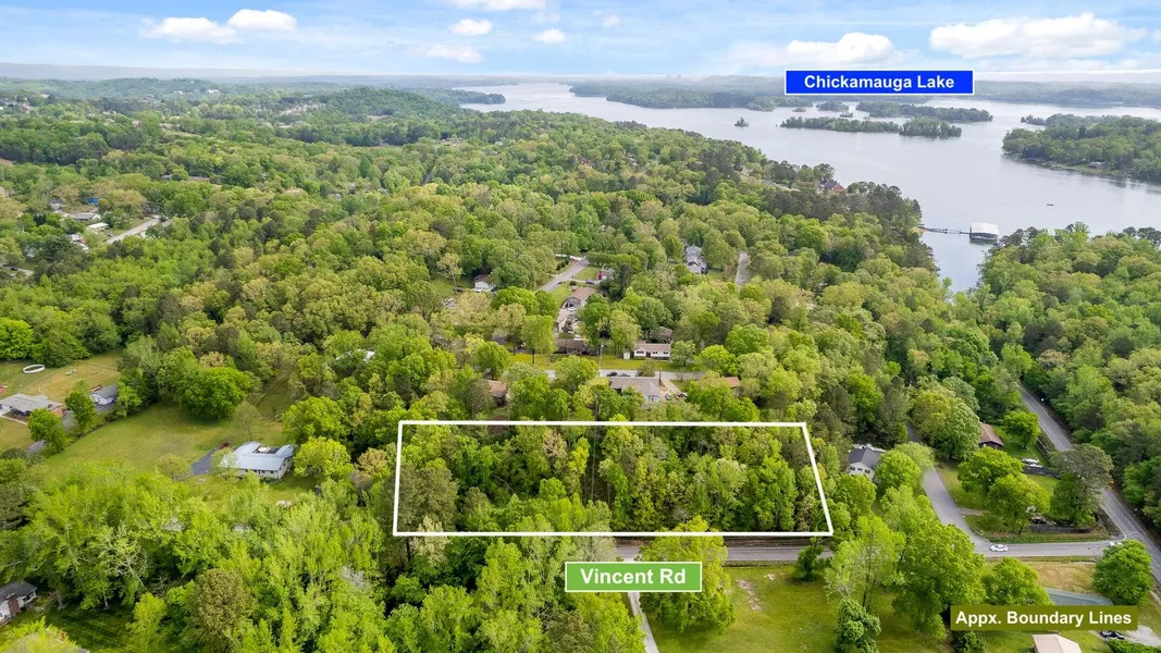 BUILD on over 1 acre near Lake Chickamauga! 300+/- ft of road frontage on Vincent Rd. Utilities including EPB FIBER OPTICS available at the road. Rolling topography with minimal restrictions. Spend your summers on the lake! 4 minutes to Chattanooga Yacht Club, 6 minutes to Hwy 58. 10 minutes to Wolftever Creek Boat Ramp. 10 minutes to Enterprise South. 16 minutes to Harrison Bay State Park. 20 minutes to Downtown Chattanooga. (Any and all property lines on photos are simulated and are approximate. Buyers to verify acreage, restrictions, property corners, property lines and all matters deemed important to purchaser. Three parcels to transfer with sale: 112H A 017, 112H A 018, 112H A 0019.)