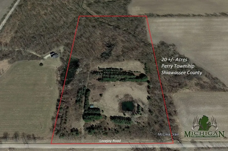 Southern Shiawassee County big bucks and gobblers await you on this 20 acres! Located south of Perry and just east of M-52 on the border line of Shiawassee and Ingham counties, this parcel is completely set up for hunting! The property consists of strategically planted pine trees, 3 ponds, hinged-cut timber, thick bedding areas, open fields for foot plots, several blinds, a nice storage shed, the McCrea Drain, and an established access drive from the road. There is more woods to the northwest and large agricultural fields in every direction surrounding the property. I noticed many heavily traveled deer trails and rubs throughout and bumped deer and turkeys while walking it. This small parcel has truly been transformed into a whitetail and turkey hot spot, so dont miss out and give me a call today at (989) 251-9060 to schedule a showing!