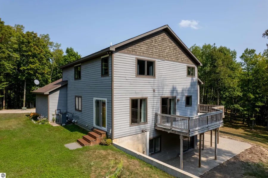 Spacious home with large acreage in picturesque Davis Lake Estates. Wonderful location providing a true sanctuary for those seeking peace and serenity with plenty of room to roam. Consisting of two parcels of record, this nearly 16 acre property has something for everyone. Step inside and be greeted by an impressive custom stone fireplace, cathedral ceiling, primary bedroom with jetted tub & separate shower, sliders from dining area to elevated deck, and a walk-out lower level with polished concrete floors. Outside revel in the vastness of your surroundings where you will enjoy a massive yard complete with basketball court and all the land you need to create your dream outdoor space. Let your imagination run wild as you envision your own personal oasis amidst the sprawling acreage. Davis Lake public access is only 1 mile away and convenience is at your fingertips when you're in need of city amenities or a day by the water as you are just a quick trip to downtown Traverse City or the Lake Michigan shoreline. This property is a nature lovers paradise and perfect for a family compound. Click on tour link for incredibly realistic view of the interior.