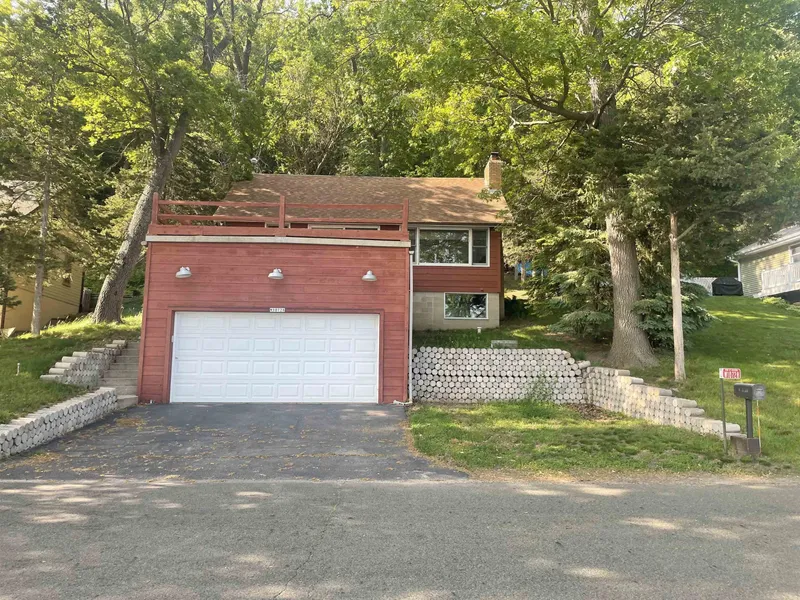 Desirable house on Whalen Grade with easy access to Lake Wisconsin. Frontage on Whalen Bay. 700 squ. ft 2 bedroom with hard wood floors and full basement. 2 car garage with deck above the garage Natural gas,and new roof . The view is phenomenol!! Seller financing will be considered for qualified Buyers. New roof , furnace and central air and well water holding tank.