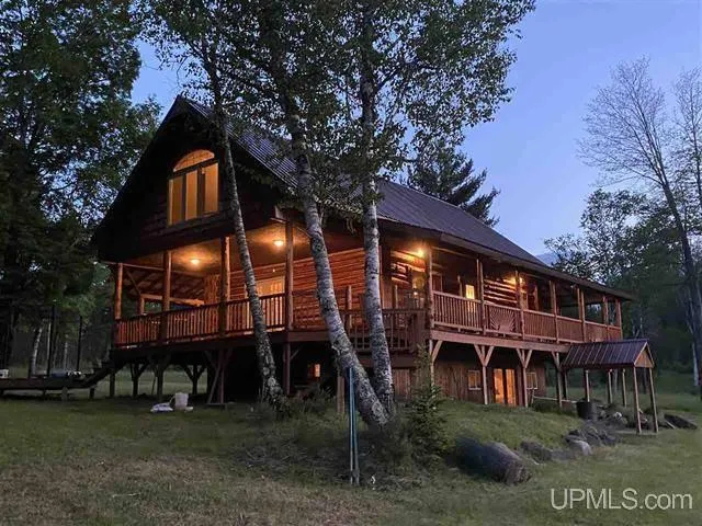 Stunning Full-Scribed Cedar Log Cabin For Sale! This Cabin is on a 29-Acre Parcel with about 1,200 feet of Sturgeon River Frontage! This property can be found in Waucedah Township, located in Dickinson County in the Upper Peninsula of Michigan. The 90 square mile Township has land, rivers, andlakes that offer year-round outdoor recreational fun! The Sturgeon is a Class I trout stream, and flows through areas that include old growth forests, rapids, and waterfalls and more than 3,700 acres of State Forest. The river forms the northern border of the property being offered for sale, and has bends, and a beautiful sandy bottom. It is a great place for boating, canoeing, kayaking, tubing, swimming, and fishing. The banks along this stretch are stable, and could be developed into sites, great for picnics, camp fires, and over-nights. The property is located in the “farm belt” of the County. Farms, quality forest lands, and the relatively mild winters in this area provide for excellent deer habitat. The property has the river, and both high grassy areas, and low cedar lands, providing mixed habitat for wildlife. Deer frequent the property regularly, and it also has other Large and Small game, and Waterfowl. Not far away are State of Michigan Lands and Corporate CFA Lands for additional “walk-in” access during season for hunting, fishing, and trapping. In Winter you can enjoy over 140 miles of scenic groomed and marked trails inDickinson County, that are maintained by the Tri-County Snowmobile Club. You enter the property from a year-round County maintained road, to an open grassy area dotted with trees along the road side. You drive down a gently sloping driveway to the building site. Your first view of the home is of the large raised, covered, porch that wraps around the entire building. It is eight feet deep on three sides, and twelve feet deep on the fourth side, providing lots of outdoor seating and entertainment room – andprotection of the logs from weather elements. An Open-Concept Living-Dining-Kitchen is located on the Main Floor Level. It can be entered from an Entrance Hallway, a Side Door off the Dining Area, or from Double Glass doors off the Living Area. This Great Room features a Corner Fireplace, High Vaulted Ceilings, with a central overhead Cat-Walk between two areas of the Upper Level. There is custom Birds-Eye Maple, Black Cherry, and Black Ash trim throughout. The Dining Area has a corner handcrafted Spiral Stairway system that leads to the Upper and Lower Levels of the home. The well designed Kitchen has custom Hickory Cabinetry. The Upper Level has a Loft Bedroom Suite, a Full Bathroom, Separate Shower, and Whirlpool Tub at one end. At the opposite end is a large room with a picture window overlooking maples trees. Currently used as a Sitting Room, it could also be used ata Second Loft Bedroom. The Lower Level of the home is a Full Walk-Out Basement. It has a large open area with a bar and French Doors that open to the back yard. It also has heated floors, two smaller framed rooms, and a Mechanical Area. It is ready to be finished to taste. The home is serviced by an Lp Gas Forced Air Furnace, public electricity, water supplied by a private 240-foot deep drilled well, and there is a septic system. A pole barn provides storage for vehicles and equipment. The backyard opens up to an expansive grassy area with a view of a man-made Pond (approximately 45x240 feet in size). An Invisible fencing containment system is already installed in the yard for canine pets. A gravel driveway passes through the center of the tree lined property to bring you to the Sturgeon River shoreline. Here there are endless possibilities! Water sports, boating and fishing are just a few uses to explore. If you are seeking Log Cabin Living for Year Round or for Seasonal Recreation Use you need to see this property! Contact Us For A Private Tour of This Property Today! MLS# 50080616