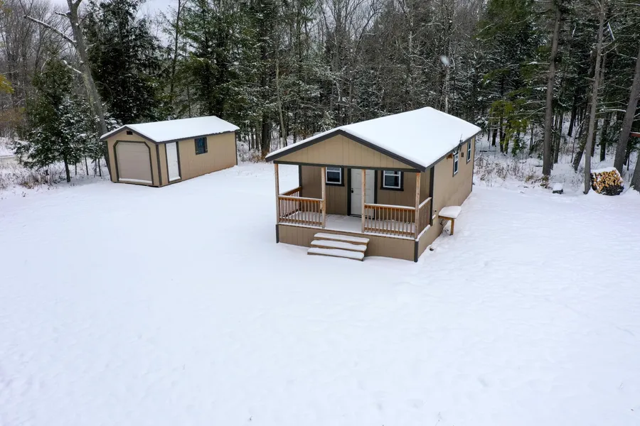 Cozy 1 bed, 1 bath cabin or country home on +/-39.18 acres. Kitchen with hickory cabinets and stainless steel appliances. Spacious bedroom with a closet. Covered porch overlooking yard and campfire pit. Diverse +/-39.18 acres with approximately 8+ acres of field and a developed food plot with an elevated 360 hunting blind. Trail system winds through the mature hemlock and maple forest. Shadow hunting blind overlooks a small sandy creek flowing through property. Owner reports abundant wildlife and excellent hunting. The property is located close to Timms Hill, the Spirit Lakes and endless miles of motorized and non-motorized trails. The stove, refrigerator, water softener, couch, dresser, window coverings, cell phone booster, tv & antenna, 6 hunting stands, 2022 Polaris Ranger SP570, DR trimmer and simplicity snowblower are included in the sale price.
