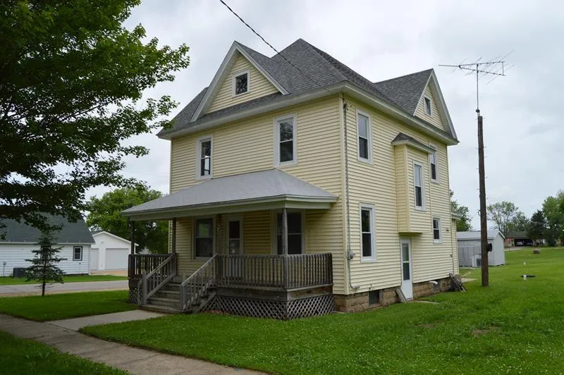 4 Bedroom home in a nice small town with a corner lot that has had many updates including: roof 2014, hot water heater 2014, furnace 2008, windows & siding 2003, septic 2003, paint, flooring, lighting and upstairs drywall. A must see. Sit out on the back deck or front porch and enjoy. Basement has built in storage shelving for more organized storage and a walkout to yard. All measurements to be verified by buyer. One bedroom has no closet.