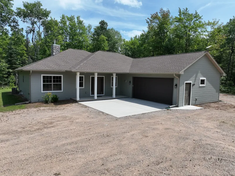 Tucked away down a private easement road, this stunning 3-bedroom, 2.5-bath ranch home offers exceptional privacy, peaceful surroundings, and abundant wildlife viewing. The home was built in 2021 and used as a secondary residence by the current owner. The home is in like-new condition. With roughly 2,000 square feet of thoughtfully designed living space, the home features a spacious open-concept layout, ideal for both relaxing and entertaining. Large windows throughout invite natural light and offer pleasant views of the 1.5-acre wooded lot. Stay cozy year-round with LP forced air heat and an additional wood fireplace that conveniently ties into the forced air duct work to heat the whole home, perfect for those chilly Wisconsin winters. The property is equipped with a private well and septic and is self-sufficient.Enjoy total seclusion with only one nearby neighbor, making this the perfect retreat for nature lovers, hunters, or anyone looking to escape the hustle and bustle. Wildlife sightings are frequentdeer, turkey, and more right out your back door and frequenting the fields down the private easement path on your way to the home.Whether you're looking for a year-round residence or a serene up-north getaway, this property near Pembine offers the perfect blend of comfort, nature, and privacy. Please call list agents Terry Patrick or Dave Schutt with questions or to schedule a private showing!