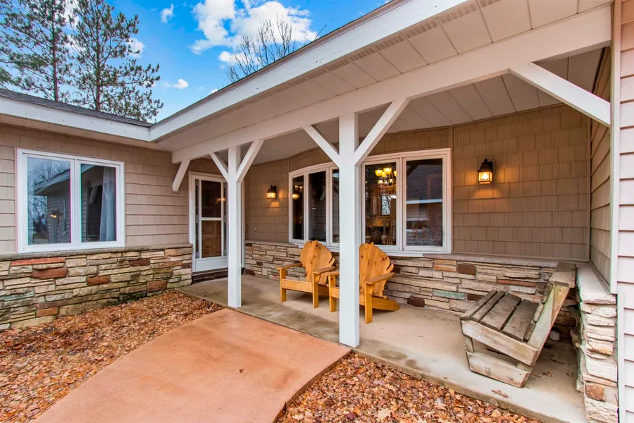 Amazing sunsets & views for miles from this unbelievable setting. Quality built home that is far from the ordinary with so much to offer! Spacious open main level living areas w/large windows taking full advantage of the wooded setting & country views. Master bedroom w/bath. Two add bedrooms, full bath, laundry with 1/2 bath complete the main level. Finished LL walkout is a nice surprise offering a large family room open to an additional large space currently used as an office. Could easily add a wall for a 4th BR if needed. LL also offers stair access to garage AND a wine cellar. Huge bonus is the extra garage w/finished upper level hosting great options for whatever you desire. Nice updates! Privacy! Acreage! If your dream is to live in the country this is a home you will want to see.