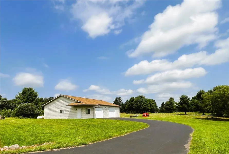 Welcome to your dream recreation retreat! This professionally landscaped 2-acre lot boasts gently rolling hills and stunning views on a quiet cul-de-sac. As you drive up the blacktop driveway, you'll be greeted by a spacious 38 x 50 garage with a covered entry. The heated workshop is equipped with both 110 and 220 V electricity, perfect for all your projects. The finished drywall and added window coverings complete the structure, creating a versatile space ready for immediate use. The property has been engineered for a future mound septic system and has underground fiber optic available for your convenience. Whether you dream of building a custom home or starting an income-generating campground, this location is perfect. Just a stone's throw away from a boat landing on the majestic Chippewa River leading into Lake Holcombe, your opportunities for outdoor adventure are endless.