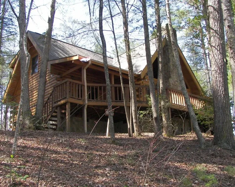 Rare offering -- custom log cabin w/2 car attached garage, ensuite configuration, on 3.80AC tract overlooking 2 lakes in the gated Mountain Community of Saddle Ridge. This home is being offered with 3 adjoining lots -- keep as a large acreage retreat, build 3 additional cabins, or sell off additional lots separately -- great income potential. The beauty of this property is location relative to the gate (easy access), lake views, and good building sites on a private dead end road. Included in