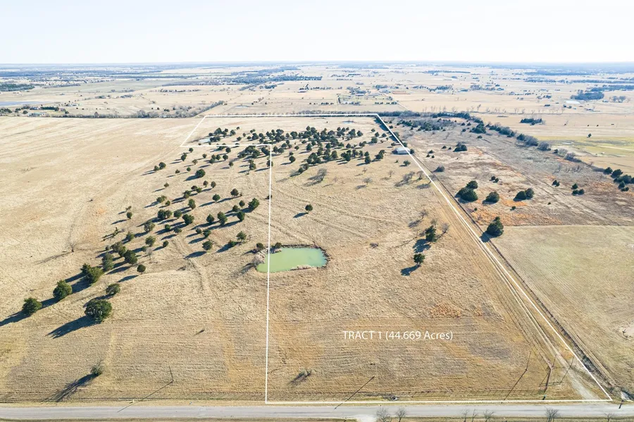 Exceptionally beautiful acreage featuring gentle rolling hills, scattered with mature trees and four ponds. Property is located on a paved road with custom gate and pipe fencing. The property has a number of incredible new construction homesites with plenty of room for recreational or agricultural use. The property is 44.69 acres with current ag exemption and a 40 x 60 metal barn. Water at the road and electricity on the property, meter needed. The property is outside of the city limits, one mile East of Highway 377 and one mile East of FM 901. Deed restrictions prohibit mobile homes, no other known restrictions. Property outline in listing photos are approximate.