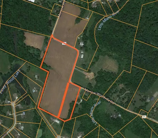 16.8 acres of tillable, minutes outside of Morrow. Numerous build locations, could be split. Cropland rents at $95/ac/yr. Great investment piece with lots of possibilities.