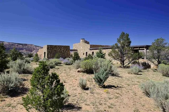 Imagine the splendor of walking into a landscape reminiscent of the famed Georgia OKeeffes paintings. Set on 1500 acres, Estancia del Rio is perched on a bluff overlooking the Chama River with views of Abiquiu Lake, Pedernal Peak and the famous yellow cliffs. The feeling of being in a grand lodge greets the lucky visitor who steps inside the roughhewn stone walls to warm themselves in front of a large fireplace or to gaze through the magnificent windows to see all the way to Colorado. The compound consists of 3 distinct buildings, the main living lodge, with generous entertaining spaces, and uber hi end kitchen; Owners separate casita with large library, two bedrooms, two baths.
